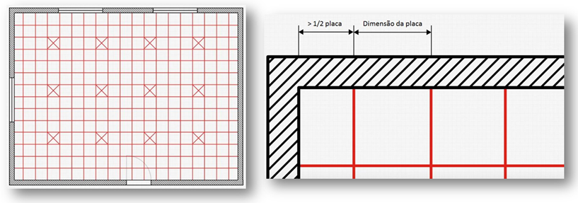 Com auxílio de nível a laser ou linha marcadora, são definidos os pontos onde serão instalados: