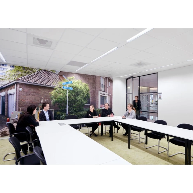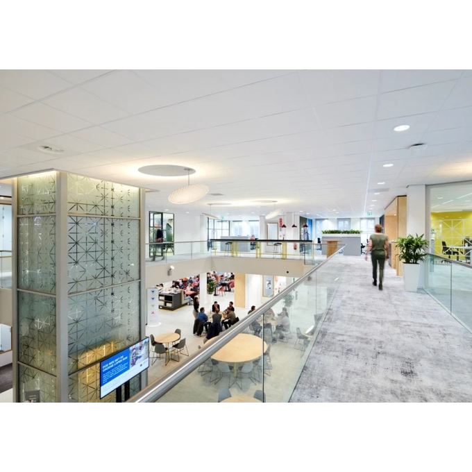 Ecophon Gedina™ A tem um sistema de perfil aparente e cada placa pode ser removida individualmente para fácil acesso ao plenum. Ecophon Gedina™ A é adequado para aplicações que requerem um forro removível, de instalação fácil e que atende as exigências funcionais padrão.