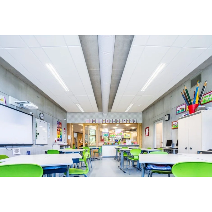 O Ecophon Gedina™ E é um forro removível que possui borda tegular com o sistema de instalação parcialmente visível, criando um forro com efeito rebaixado que acentua cada peça. Indicado para aplicações que exigem um forro removível, fácil de instalar e atender as exigências funcionais padrão.
