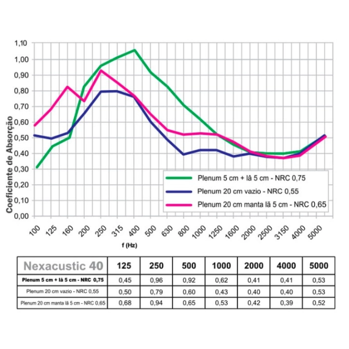 Curva do coeficiente de absorção sonoro:
