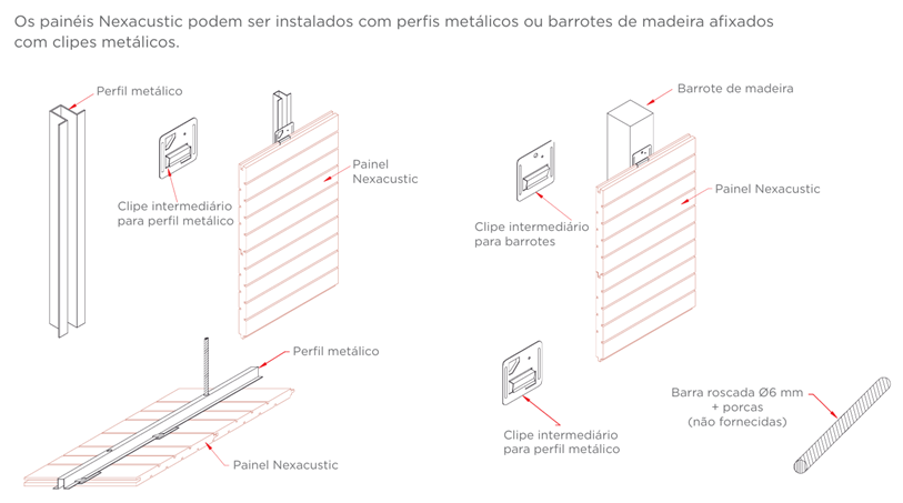 Produzidos em MDF, os Painéis Nexacustic podem ser instalados em teto ou paredes formando superfícies planas ou curvas. Com design diferenciado e sistema exclusivo de fixação proporcionam visual contínuo e acabamento perfeito.