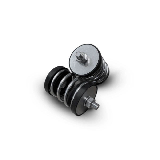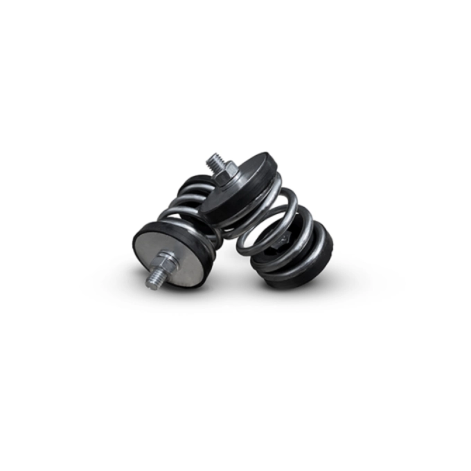 Além disso, a mola tem uma frequência natural mais baixa do que a borracha, o que a torna mais eficaz na isolação de vibrações e sons. Muitas vezes, as borrachas utilizadas são muito duras, o que compromete sua eficiência como isolantes. No entanto, se a borracha for dimensionada corretamente e escolhida para suportar a carga adequada, ela pode ser utilizada em algumas situações específicas.