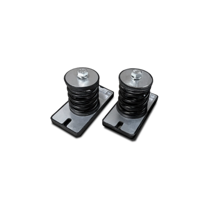 Os amortecedores são instalados de forma rápida e fácil. Se a sua condensadora estiver apoiada em uma cantoneira, o modelo recomendado é o HVAC-1027-02. Já se estiver apoiada na laje, o modelo indicado é o HVAC-1053-02.